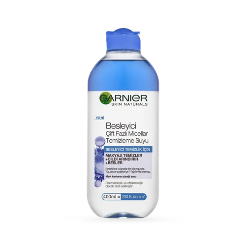 میسلارواتر دوفاز GARNIERگارنیه مدل BESLEYICI CIFT FAZLI مخصوص انواع پوست حتی حساس و نازک و غنی شده با روغن گل ذرت است. از پوست و چشمهای ظریف شما مراقبت می کند. بدون مالش به راحتی آرایش را پاک می کند. میسلار ها مانند آهن ربا ناخالصی های پوست را از بین می برد.